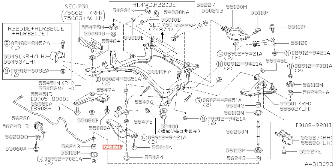 Support de différentiel arrière pour Nissan Skyline R32 GTR - 55471-05U10