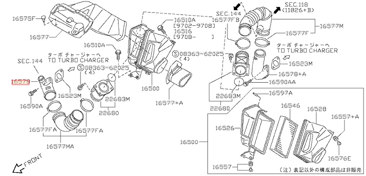 Tubulure admission entrée de turbo avant pour Skyline GTR RB26DETT - 16578-05U02