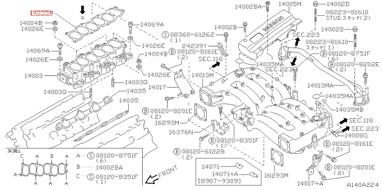 Joint de plenum d'admission de Nissan 300ZX Z32 VG30DETT - 14033-30P02 / A033-30P02