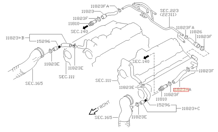 Durite gauche pour vanne PCV de Nissan 300ZX Z32 VG30DETT - 11823-30P11