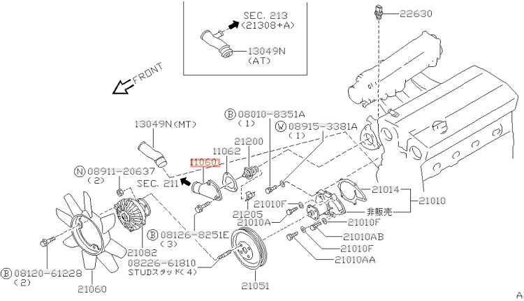 Pipe thermostat pour circuit de refroidissement de Nissan 200SX S13 CA18DET - 11060-35F00