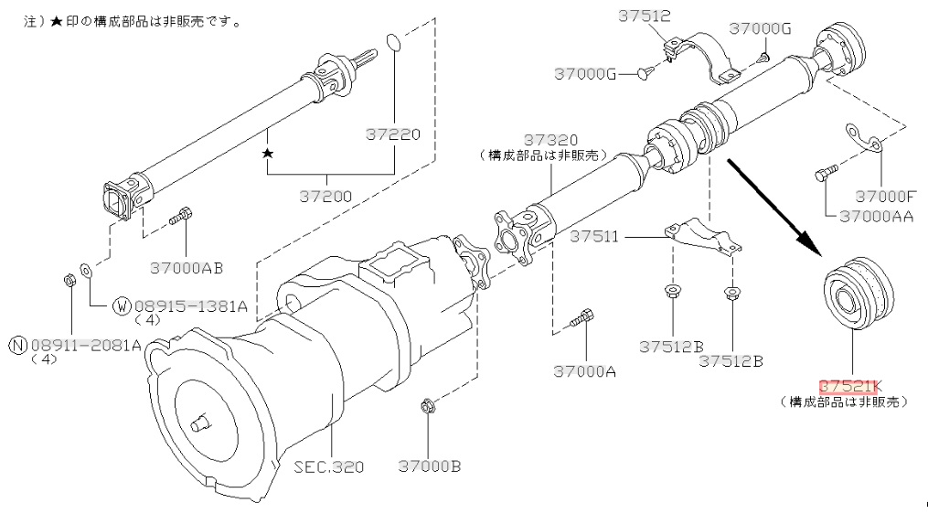 Palier central d'arbre de transmission pour Nissan Skyline R33 R34 GTR - 37521-AA325