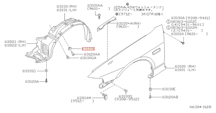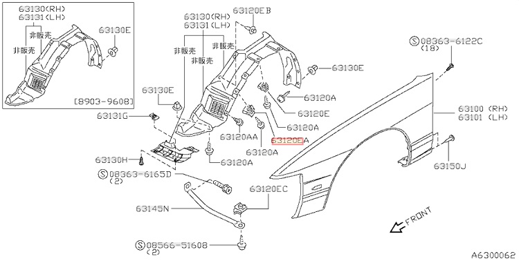 Clips de fixation pour passage de roue de Nissan 200SX S13 / R32 - R33 - R34 - 63848-35F00