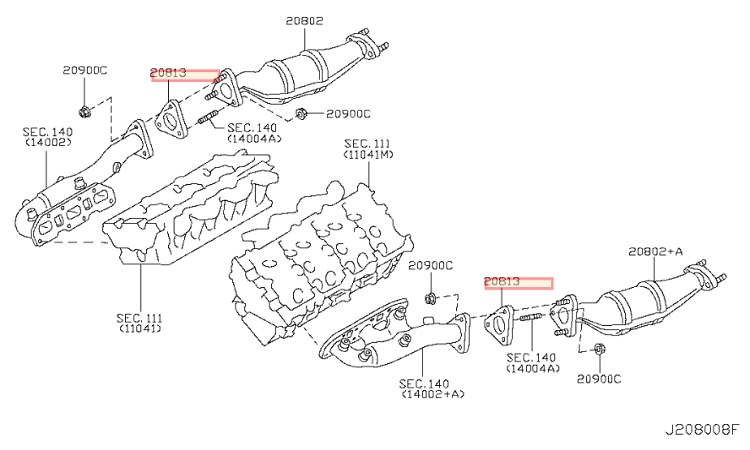 Joint échappement à 3 trous collecteurs / catalyseurs pour Nissan 350Z Z33 - 20813-AL500 / 20813-AL50A