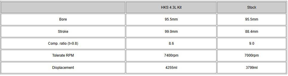 Stroker kit 4.3L HKS pour Nissan R35 GTR - 21004-AN019