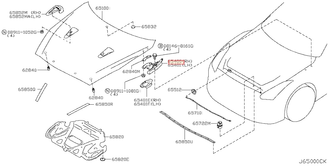 Charnière droite de fixation capot pour Nissan GTR R35 - 65400-JF07A