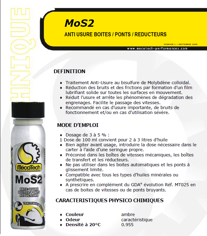Anti usure MoS2 Mecatech pour boites de vitesse, ponts, réducteurs - MT022
