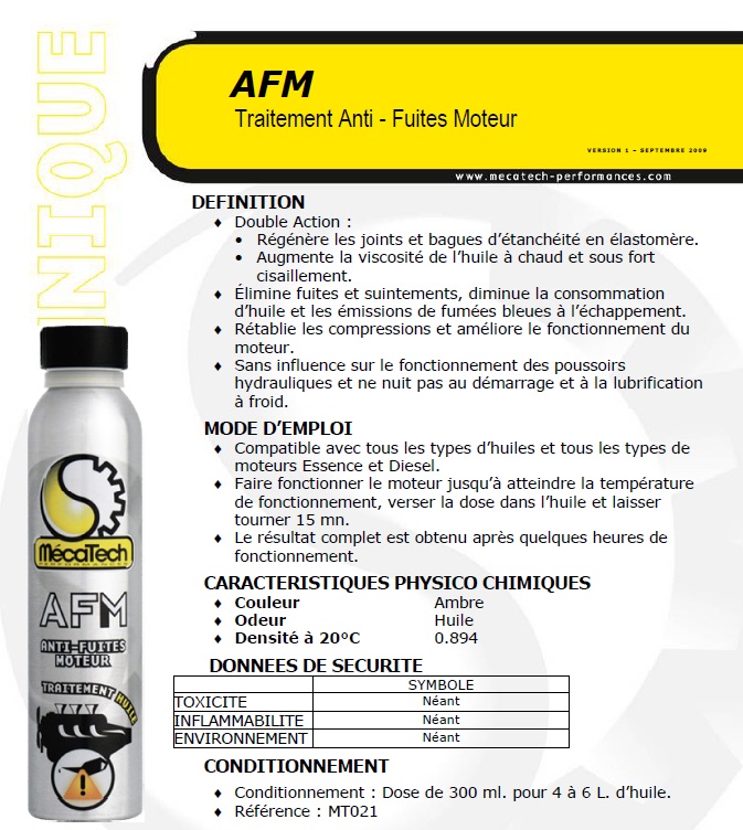 Anti-fuite moteur anti-consomation d'huile Mecatech AFM - MT021