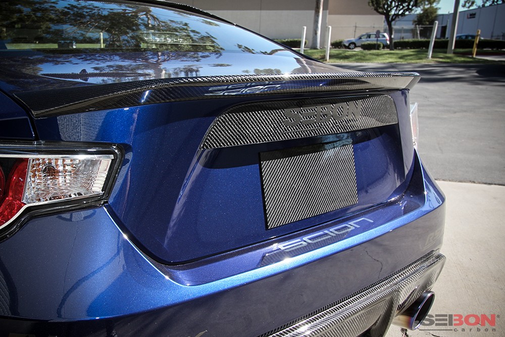 Enjoliveur d'éclaireur de plaque en carbone Seibon pour malle arrière de Toyota GT86 / Subaru BRZ - RG1213SCNFRS
