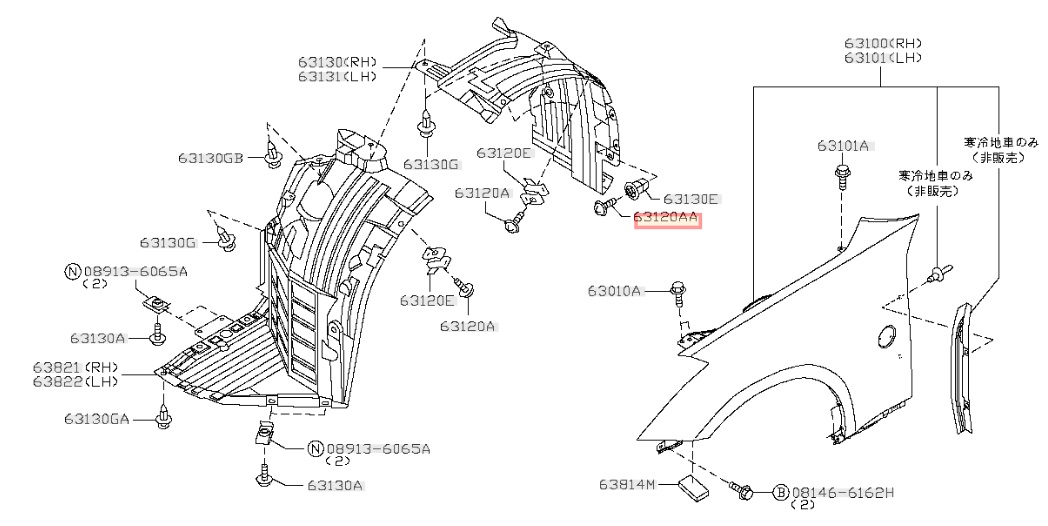 Vis de fixation pour passage de roue avant pour Nissan 350Z Z33 - 01451-00841