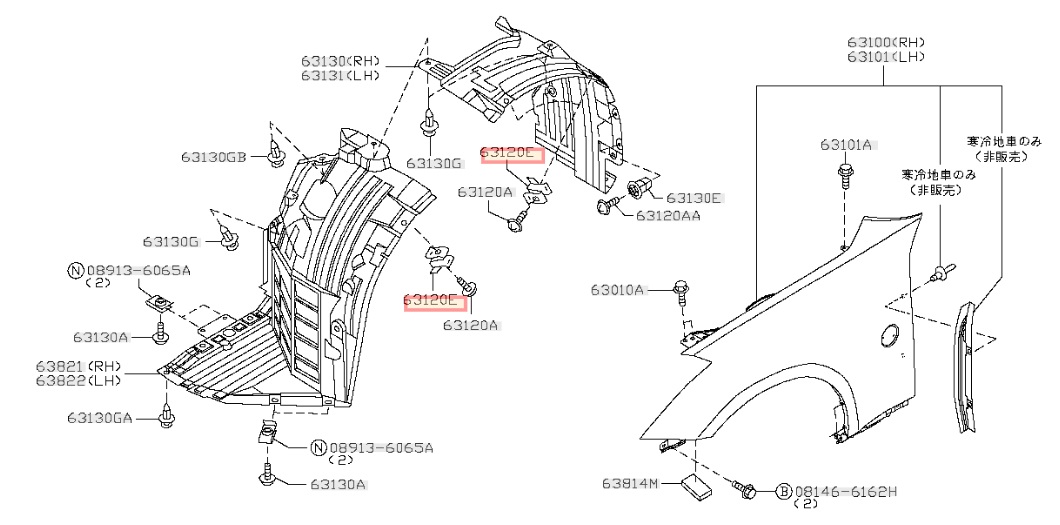 Agraphe de fixation pour passage de roue avant de Nissan 350Z Z33 - 63848-35F00