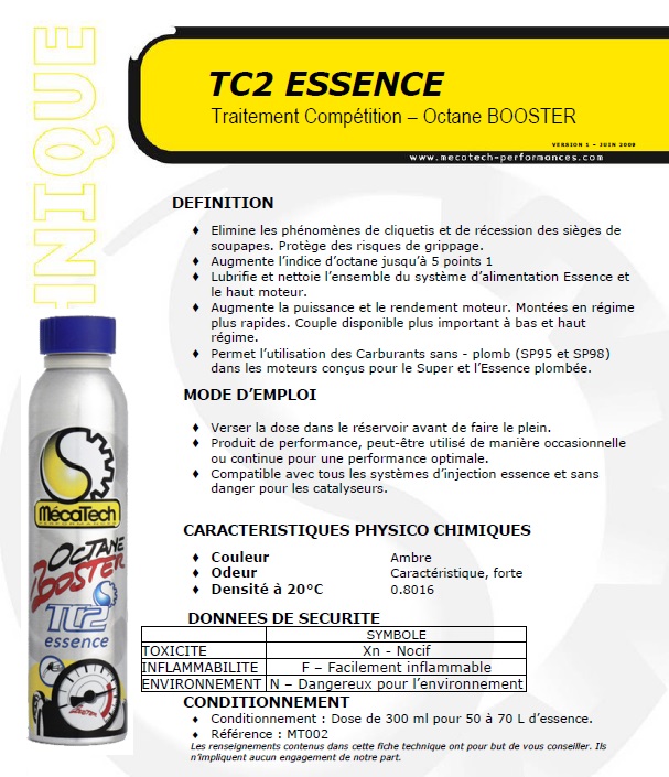 Permet de réhausser le niveau d'octane dans le sans plomb 95 ou 98