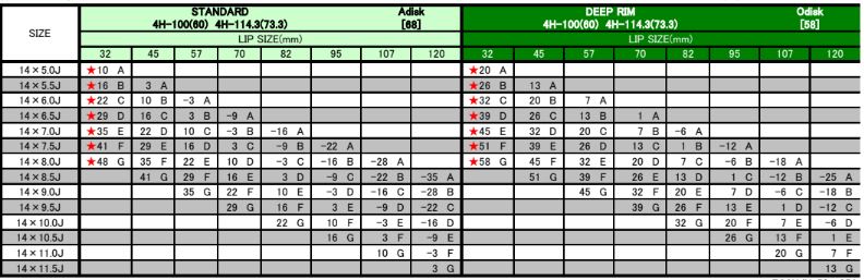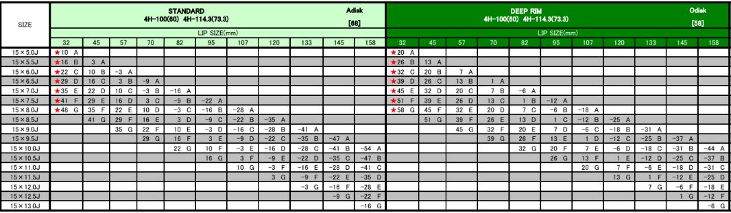Plusieurs largeurs et Offsets disponibles: 5 à 13 pouces voir tableau ci-dessous