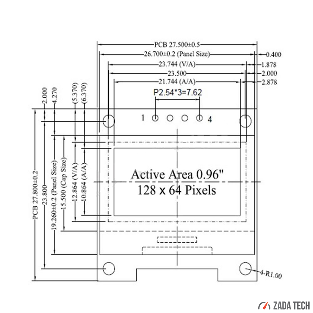 Découvrez les dimensions de l'écran OLED 0.96" ci-dessous :