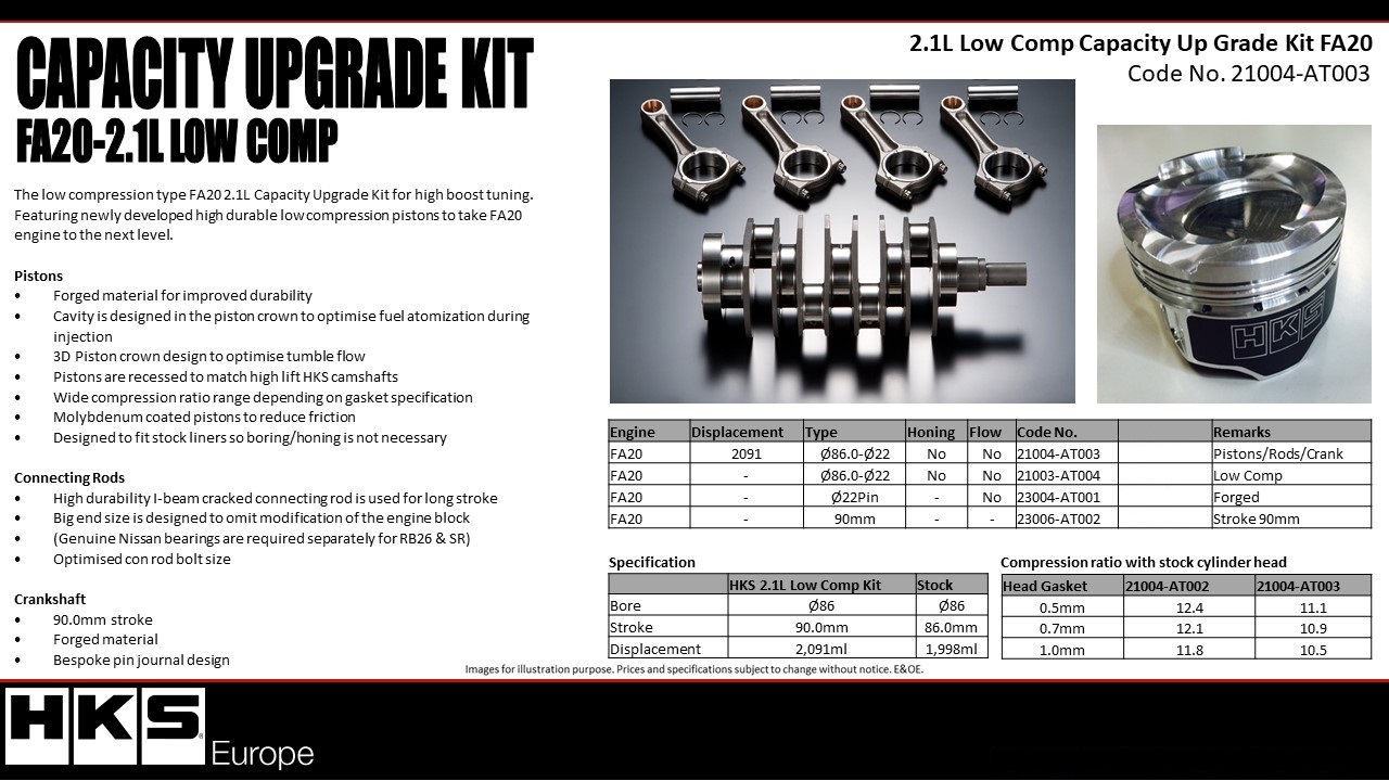 Kit stroker forgé 2.1L Low Compression HKS pour Toyota GT86 / Subaru BRZ / Scion FR-S - 21004-AT003