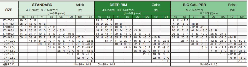 Plusieurs largeurs et offsets disponibles : 5 à 16 pouces voir tableau