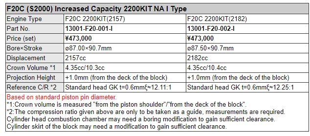 Stroker kit Toda Racing pour Honda S2000 moteur F20C - 13001-F20-001-I