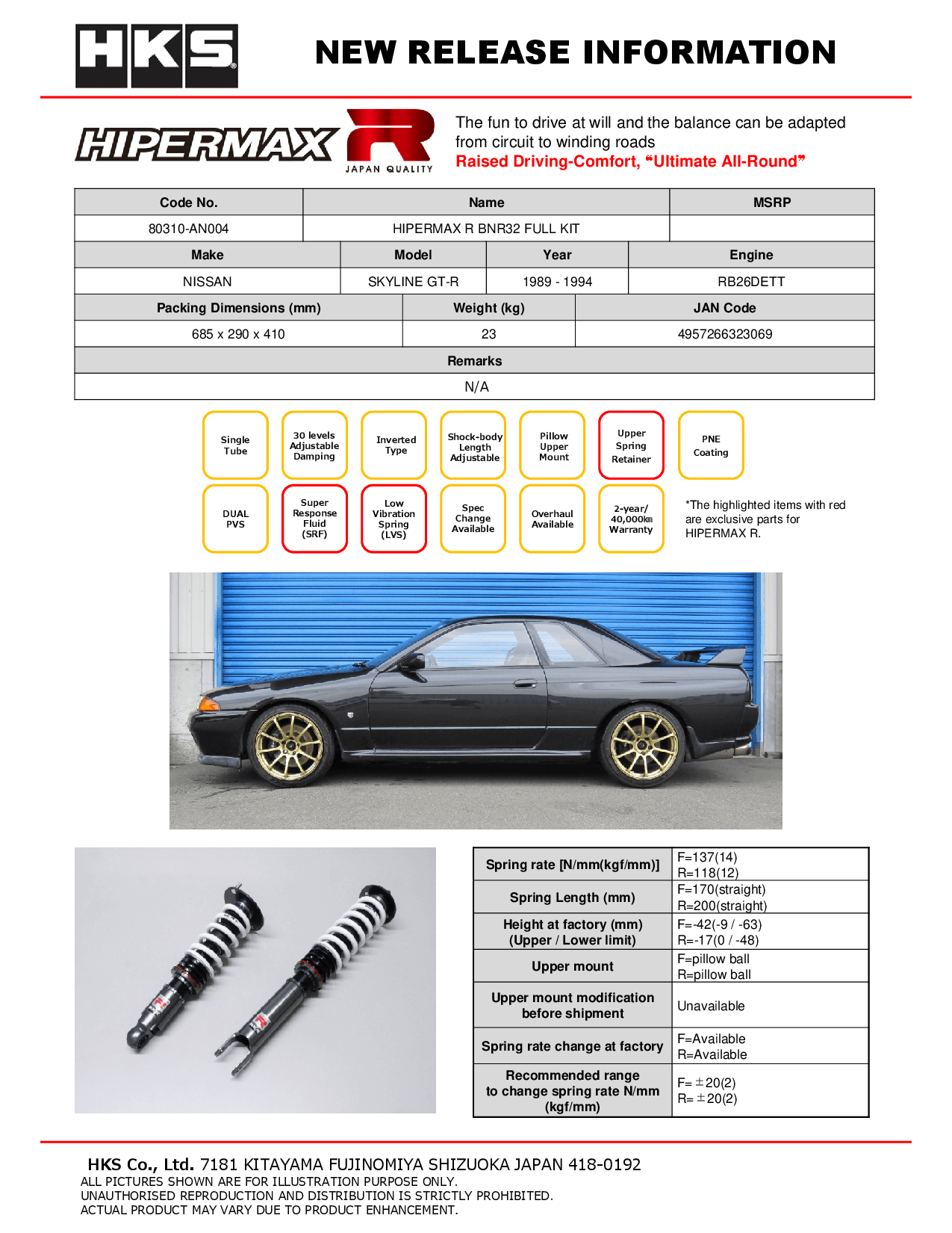 Kit suspension Hipermax R HKS pour Nissan R32 GTR - 80310-AN004