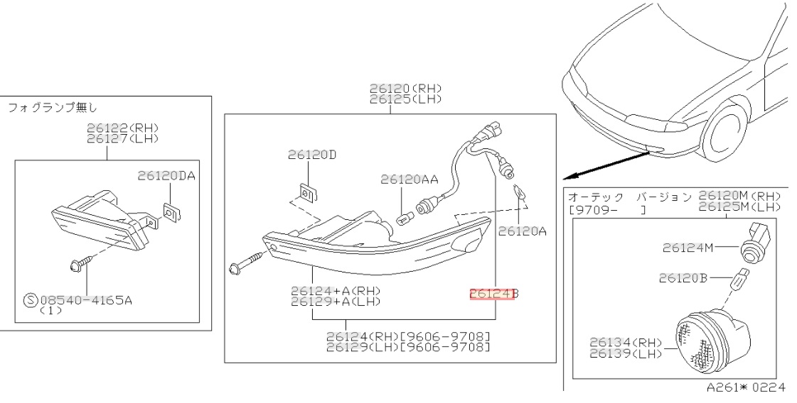 Faisceau OEM pour clignotants de pare choc avant de Nissan 200SX S14 A Kouki JDM - 26242-82F00