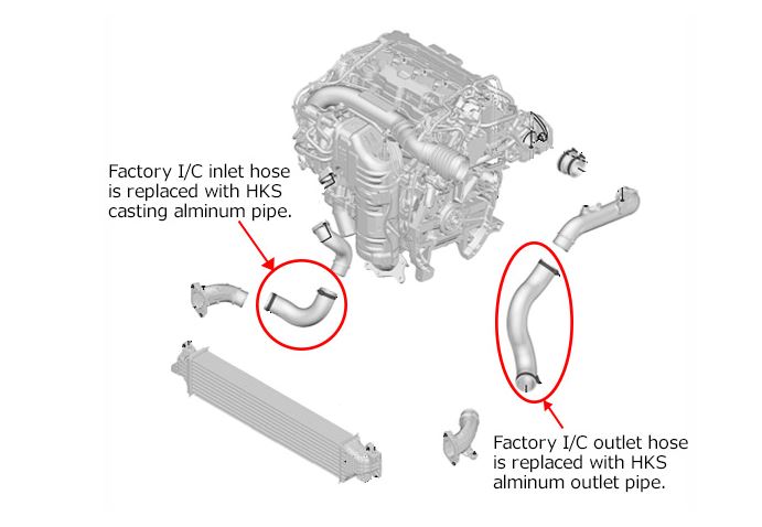 Les kits piping HKS sont conçus en aluminium pour offrir une durabilité et une sécurité améliorées. Les tuyaux ont été repensés afin de réduire le nombre de coudes et d'augmenter le rayon de courbure, ce qui permet de minimiser la perte de pression et la résistance à l'écoulement.