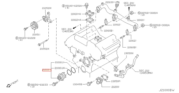 Pompe à eau pour moteur VQ35HR , VQ37VHR , VR38DETT de Nissan Z33 350Z - 370Z et GTR B1010-JK20A