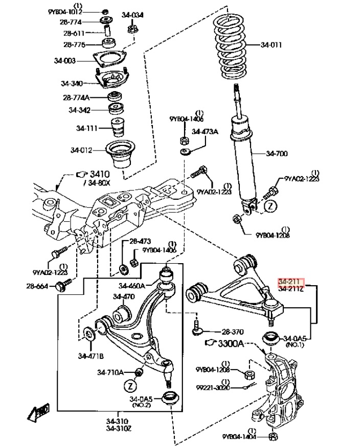 Triangle inférieur avant gauche ou droit pour Mazda RX-8 - ORIGINE MAZDA F15134350 / F15134300