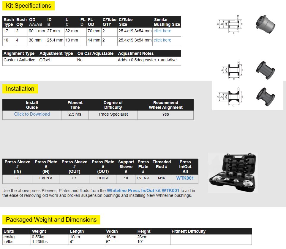 Les kits Whiteline sont conçus pour améliorer la traction et l'adhérence dans les virages en conduite sportive.