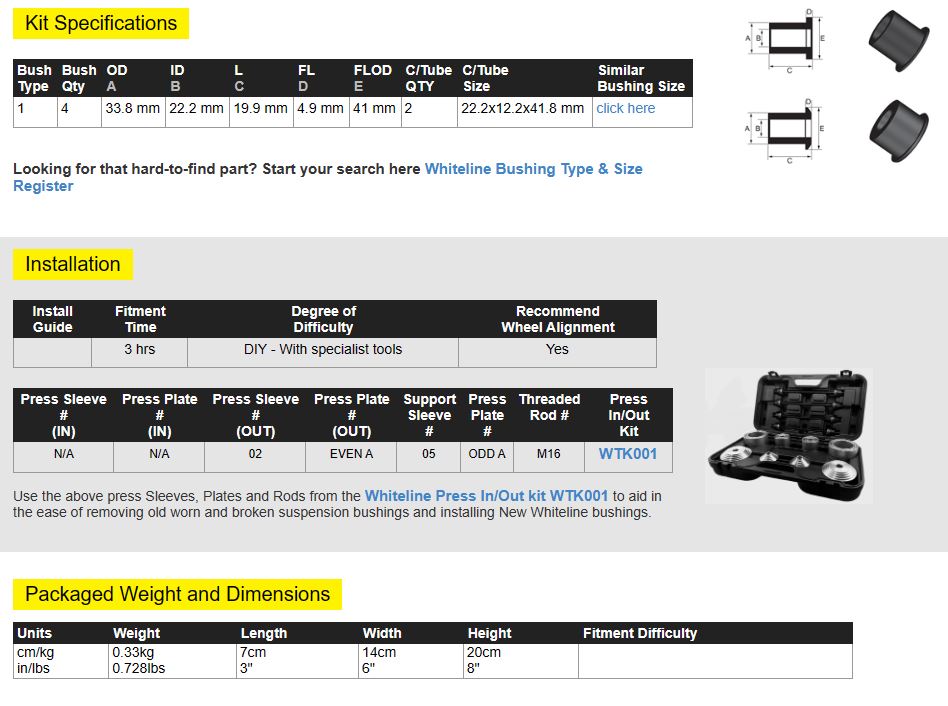 Kit silent blocs de bras inférieur arrière Whiteline pour Subaru BRZ/ Toyota 86 - W63428