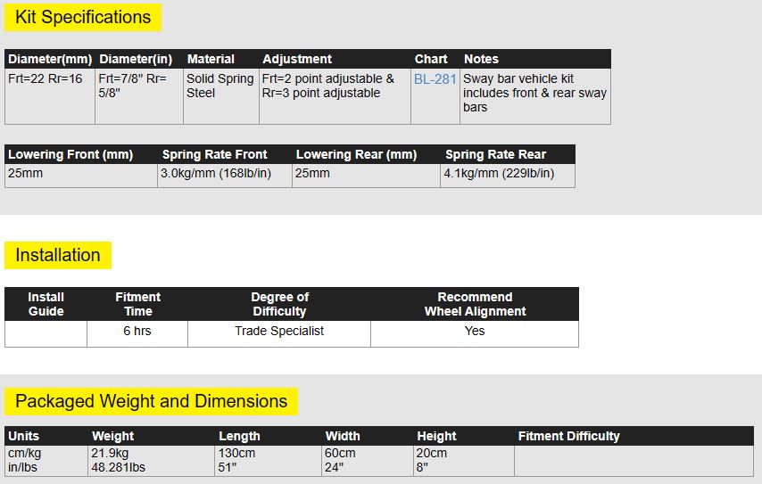 L'ultime mise à niveau de vos suspensions ! La performance, la maniabilité et le confort font partie du kit Grip Series Stage 1 qui comprend des barres stabilisatrices avant et arrière réglables, des biellettes, des ressorts performants ainsi que tout le nécessaire de montage signé Whiteline.