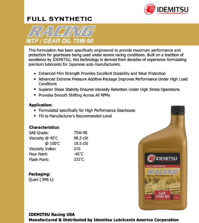 Huile de transmission 75W90 Idemitsu pour boite de vitesse hautes performances - 2846-042