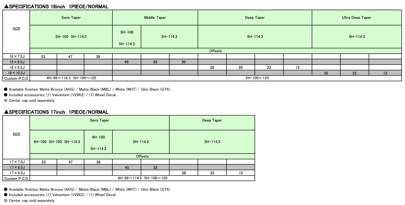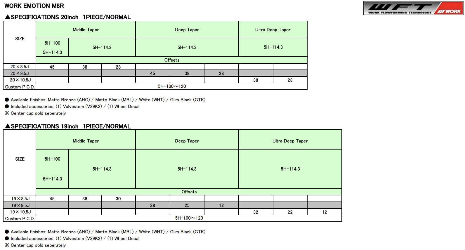 Plusieurs autres largeurs et Offset disponibles: 7.5 / 8.5 / 9.5 / 10.5 pouces voir tableau
